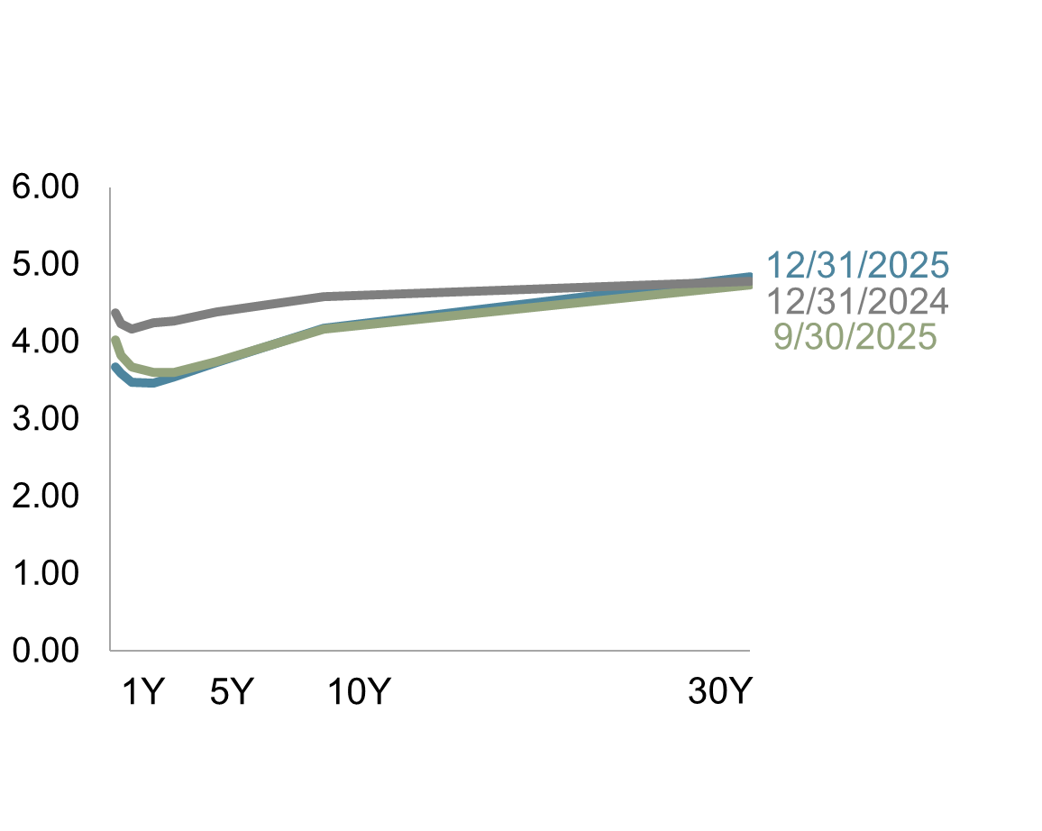 As interest rates declined across much of the US yield curve, fixed income once again provided income, stability, and ballast. Short- and intermediate-term bonds produced solid total returns across Treasuries, corporates, and municipals. Globally, bond markets reflected the uneven nature of inflation and growth, reinforcing the importance of structure rather than speculation.