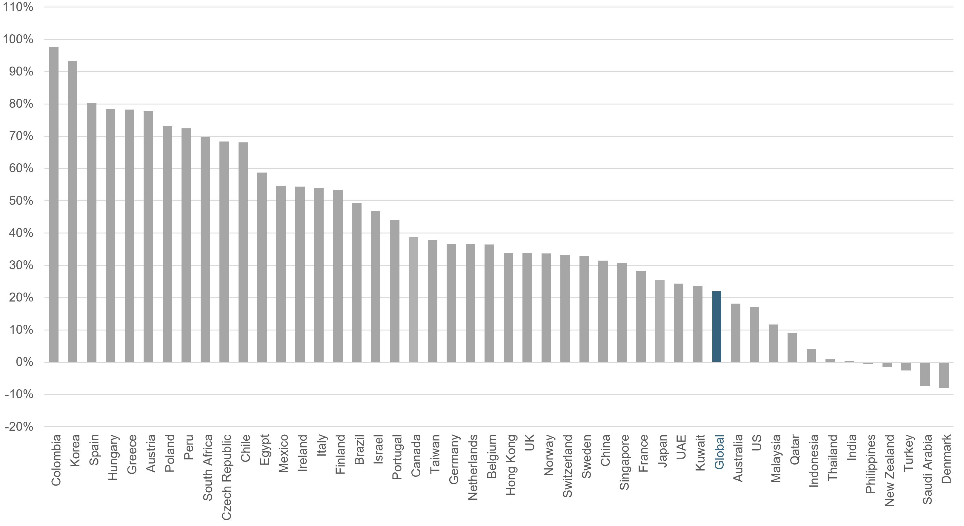 Colombia recorded the highest country results, while Denmark posted the lowest returns for the year.